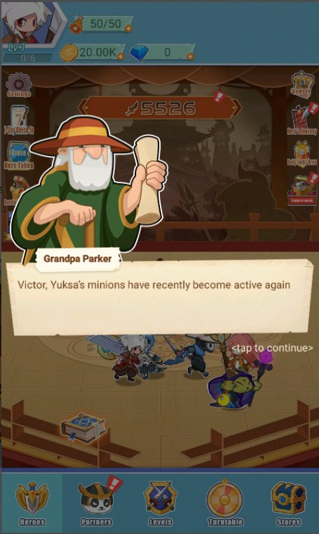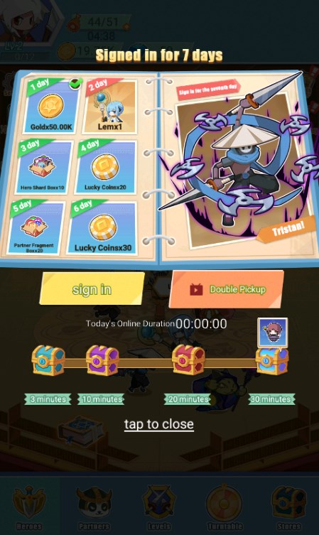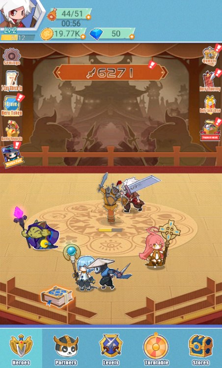 2、通过完成关卡获取资源,强化英雄和同伴;